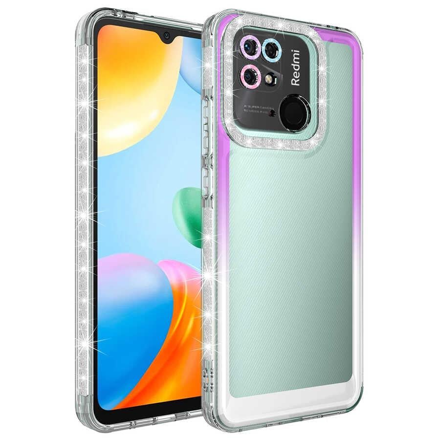 Xiaomi Redmi 10C Kılıf Simli ve Renk Geçiş Tasarımlı Lens Korumalı Zore Park Kapak
